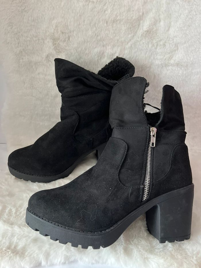 Bottines noires 40 talons 8 cm Fermeture éclaire Matière effet daim Bottines modulables