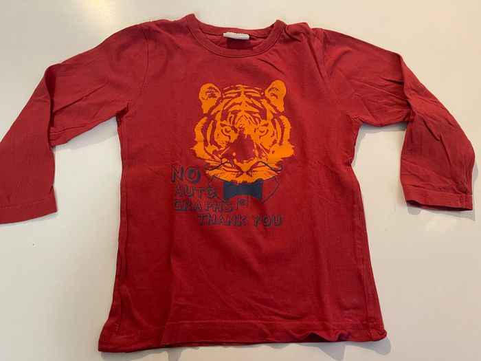 T-shirt ML 3 ans Tigre en bon état (sans tache ni trou ; occasion).
