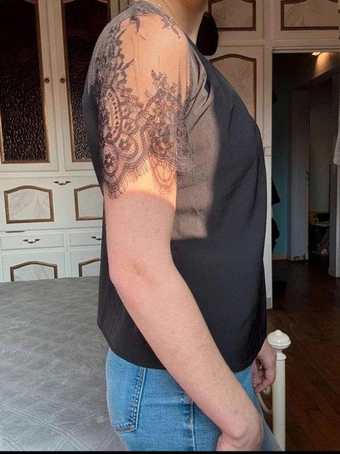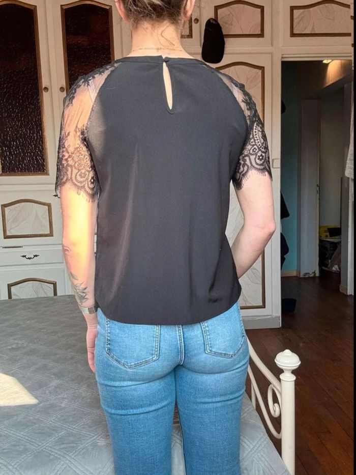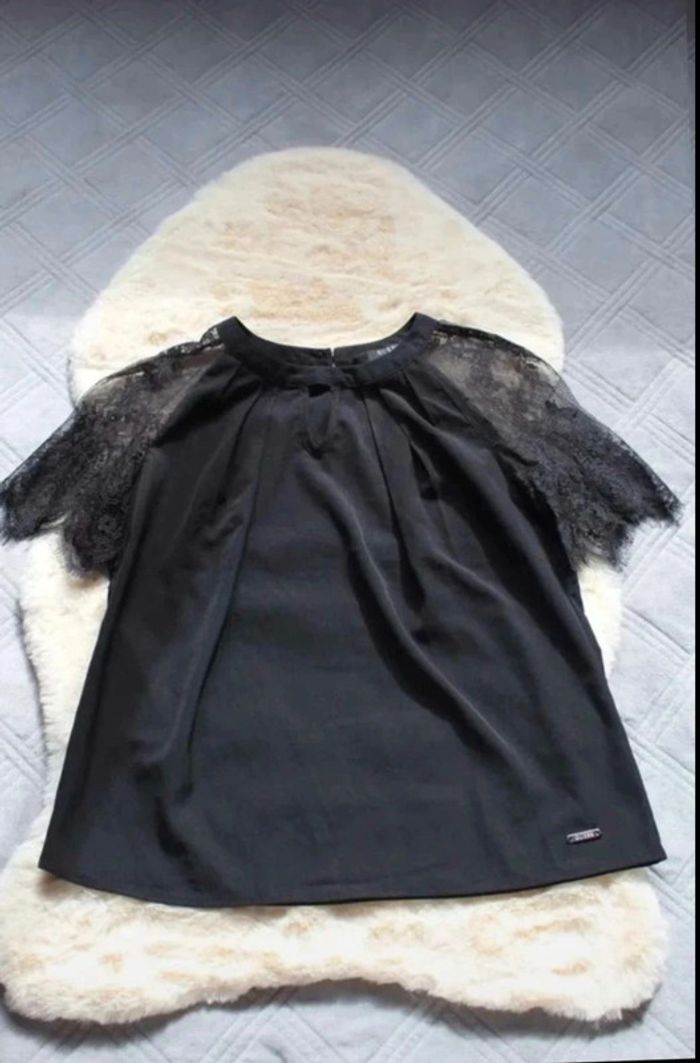 Haut  noir Guess  avec dentelle aux épaules  -  taille  XS -  très bon état - photo numéro 3