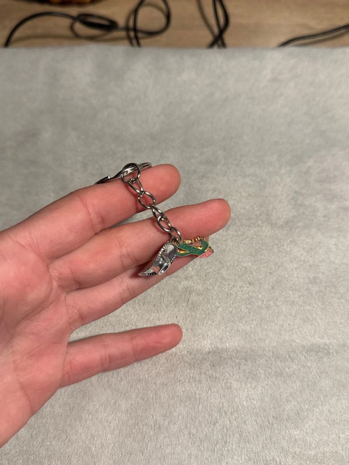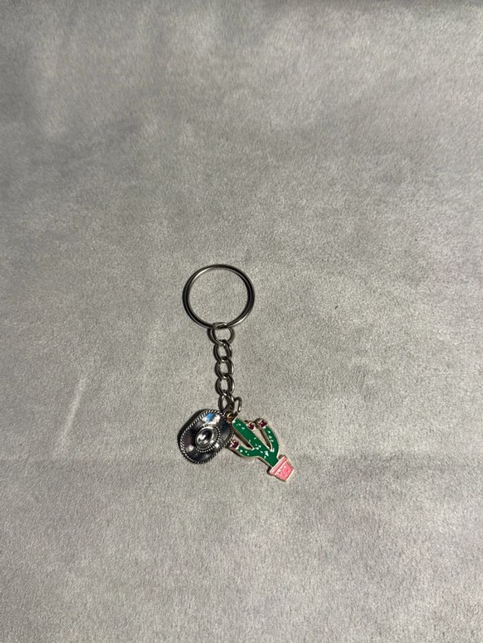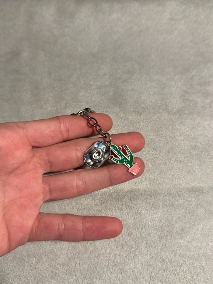 Ajoutez une touche originale à vos clés ou à votre sac avec ce porte-clés unique assemblé à la main ! 🔹 Pendentif chapeau de cowboy en métal argenté 🔹 Petit cactus peint, détail rouge et vert 🔹 Style western / far west / désert 🔹 Idéal en cadeau ou pour accessoiriser avec humour et style 🖐️ Création artisanale 📦 Envoi rapide et soigné ✅ Produit en parfait état, jamais utilisé