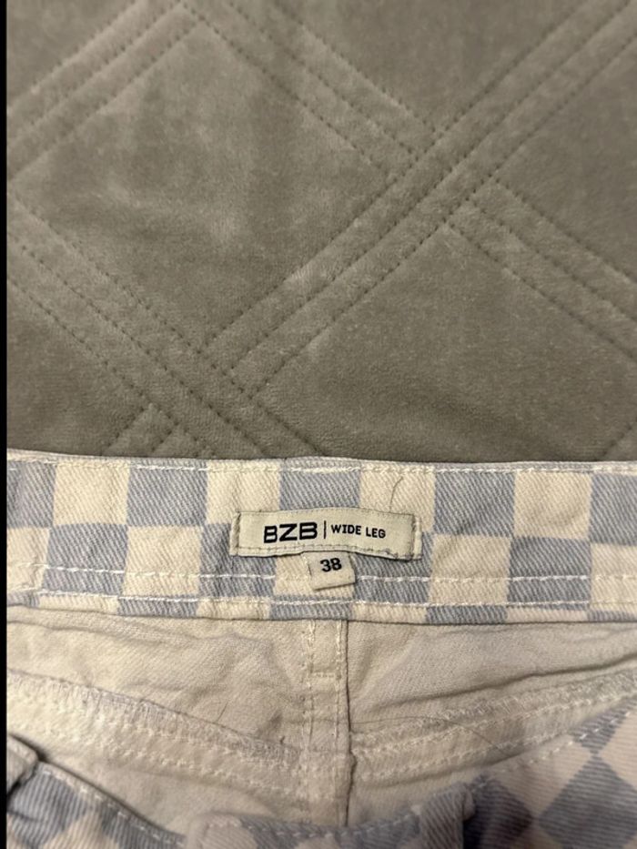 Jean wide leg à carreaux bleu et blanc - bizzbee - taille 38 - très bon état - photo numéro 3