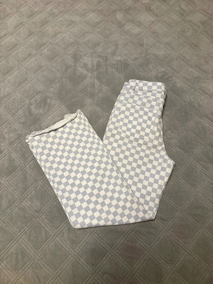 Jean wide leg à carreaux bleu et blanc - bizzbee - taille 38 - très bon état - photo numéro 1