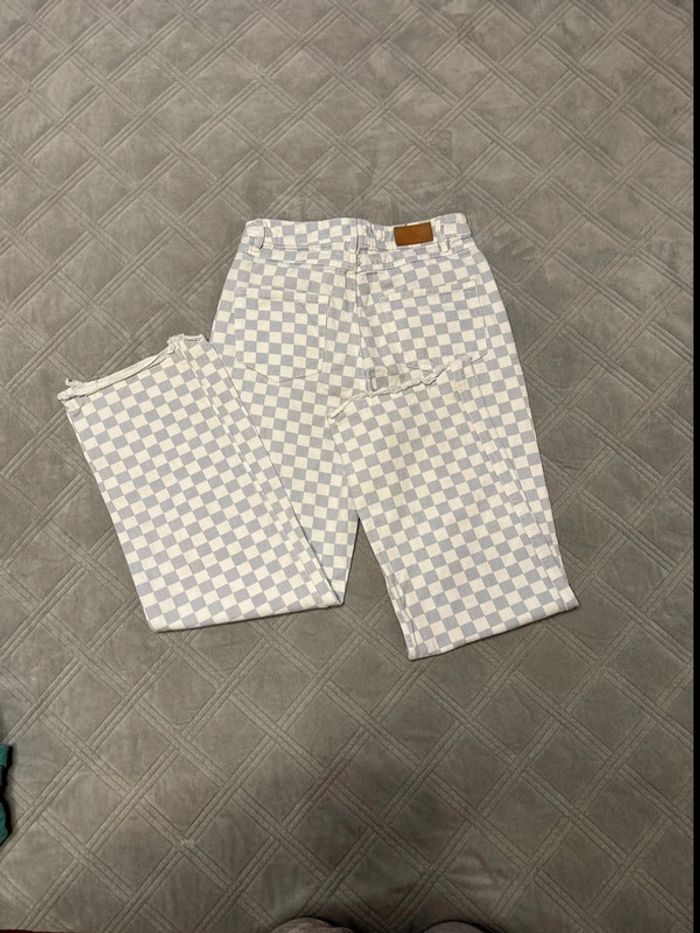 Jean wide leg à carreaux bleu et blanc - bizzbee - taille 38 - très bon état - photo numéro 2