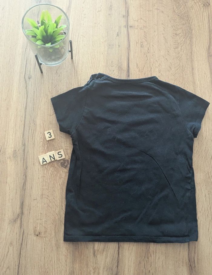 🧷 Tee shirt manches courtes 📏 3 ans - 98 cm 🏷️ Kiabi 🖍️ Noir et jaune 🟢 Très bon état. 🚭 Maison non fumeur. ✅ Vérifié. Sans tâches ni trou.