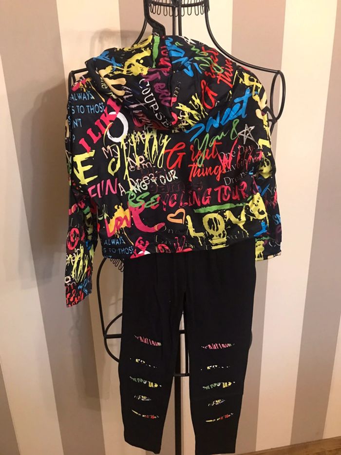 Ensemble haut et pantalon taille élastique imprimé graffitis âge 4 ans état NEUF