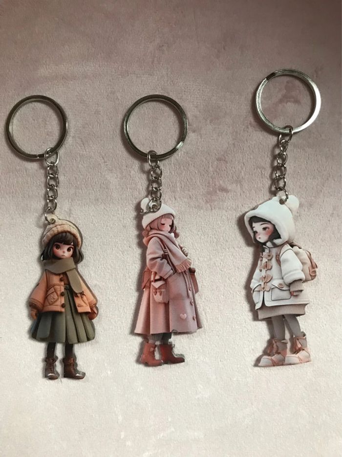 3 portes-clés ornement filles élégantes design 2D plat Chic et Cool