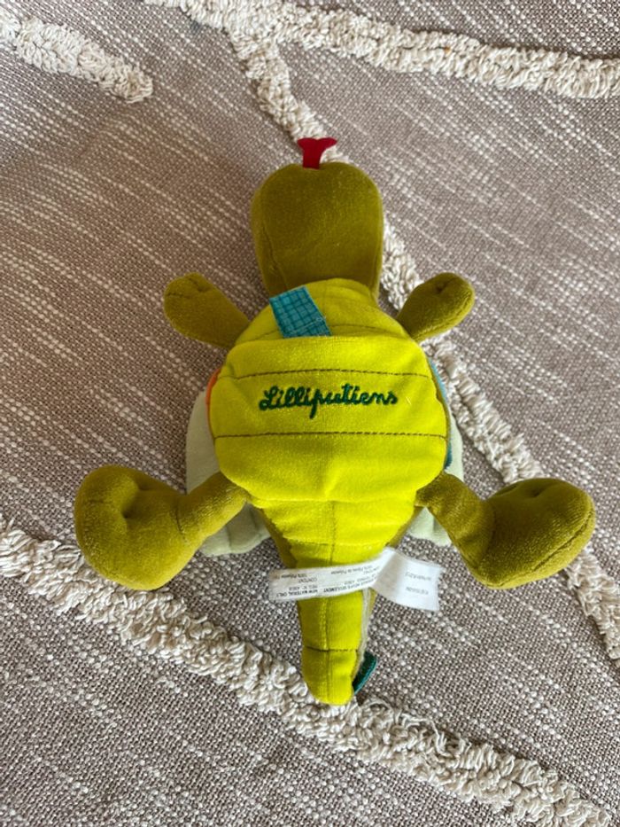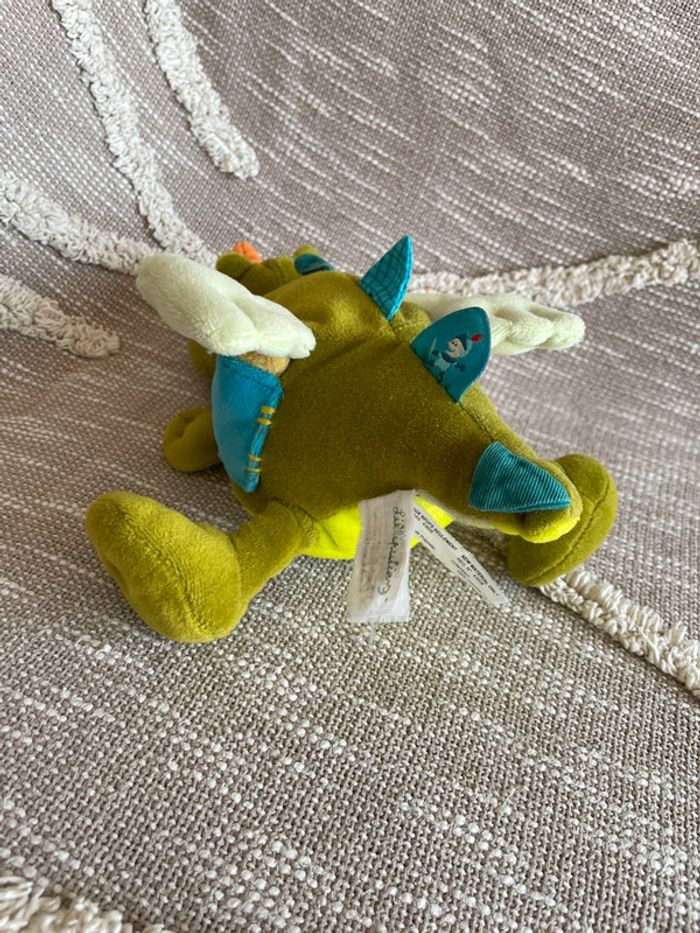 Peluche doudou d’éveil 28cm lilliputiens crocodile dragon vert et orange très bon état - photo numéro 4