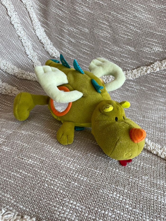 Peluche doudou d’éveil 28cm lilliputiens crocodile dragon vert et orange très bon état