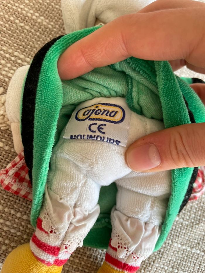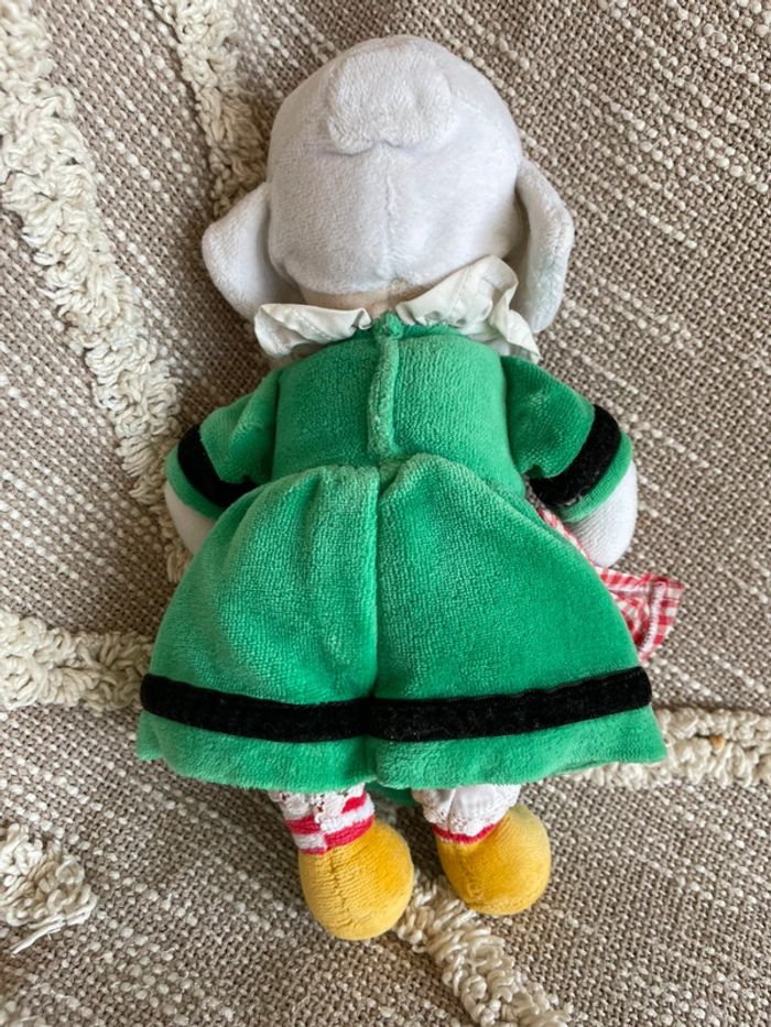 Peluche doudou 25cm ajena poupée fille femme bretonne rouge et vert très bon état - photo numéro 4