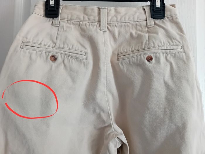 Une tâche derrière à gauche Bas des jambes du pantalon abîmés #patmon_enfant_pantalons