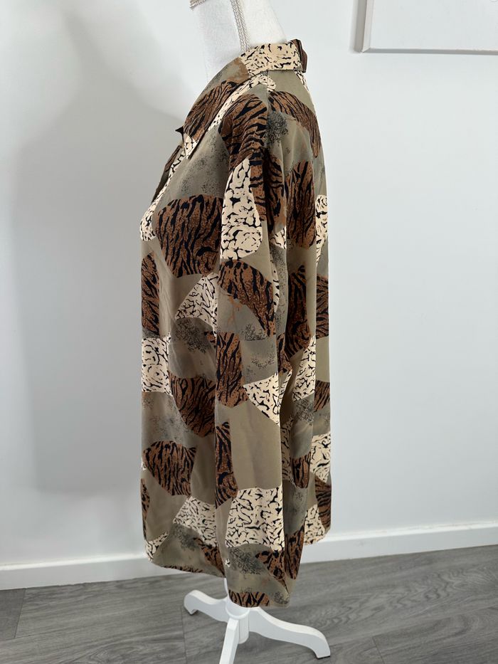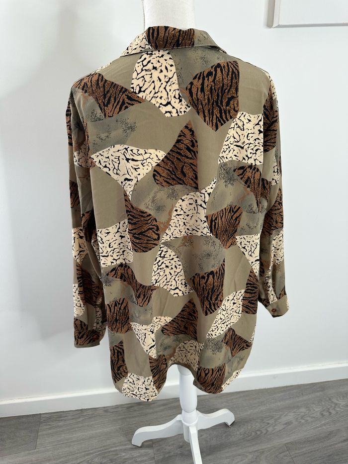Chemise oversize kaki beige marron léopard zèbre Vintage T42 XL - photo numéro 7