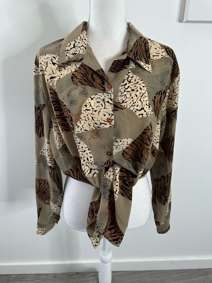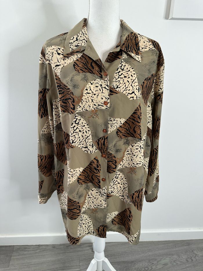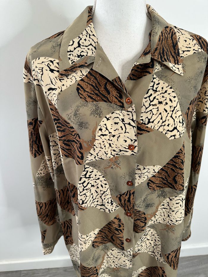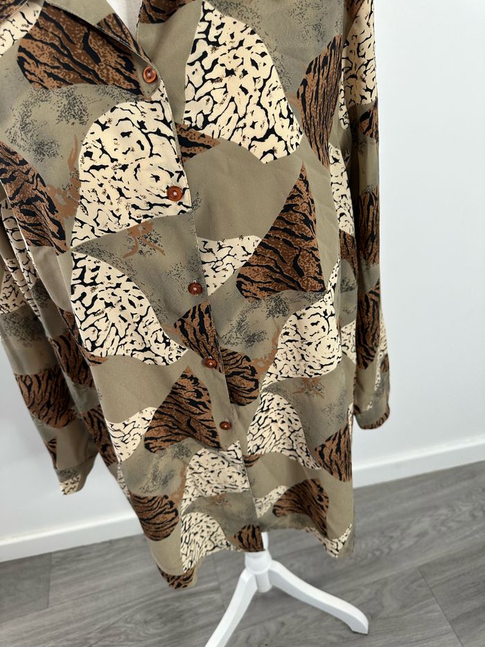 Chemise oversize kaki beige marron léopard zèbre Vintage T42 XL - photo numéro 3