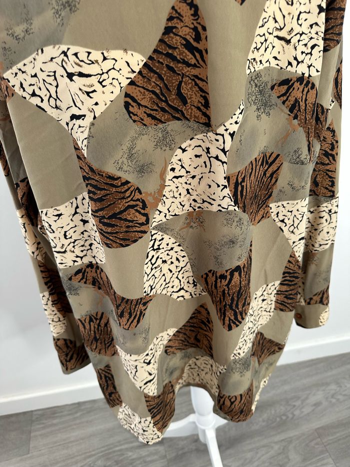 Chemise oversize kaki beige marron léopard zèbre Vintage T42 XL - photo numéro 8