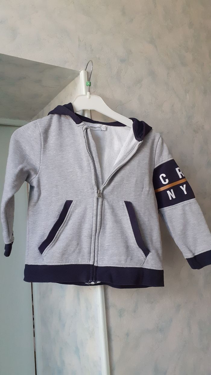 Vends une veste à capuche zippée grise et bleu marine Tissaia 6 ans