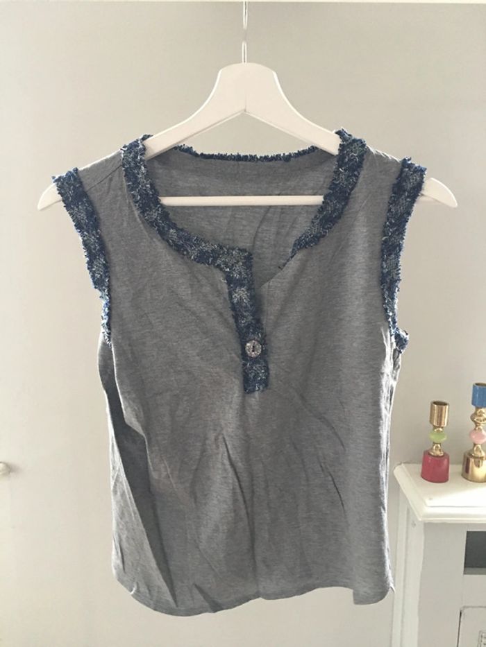 Haut gris et bleu taille M - photo numéro 3