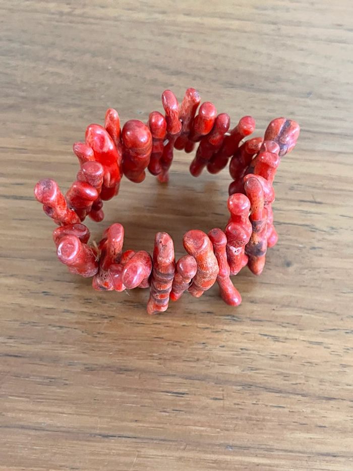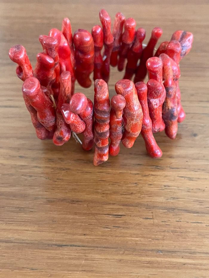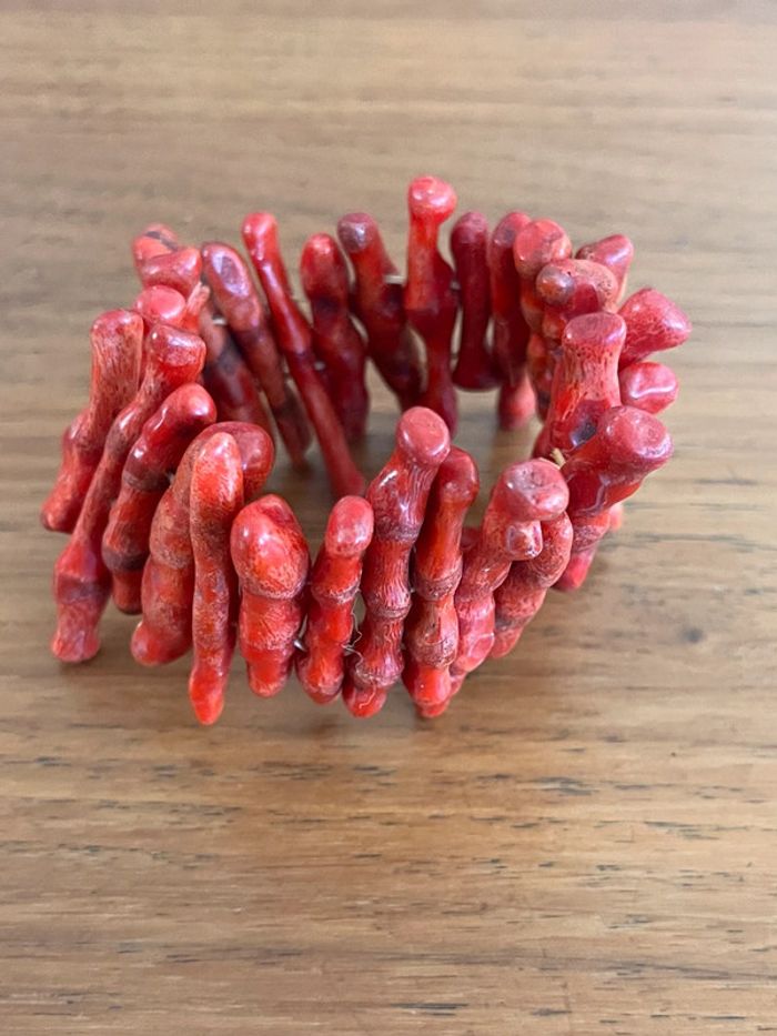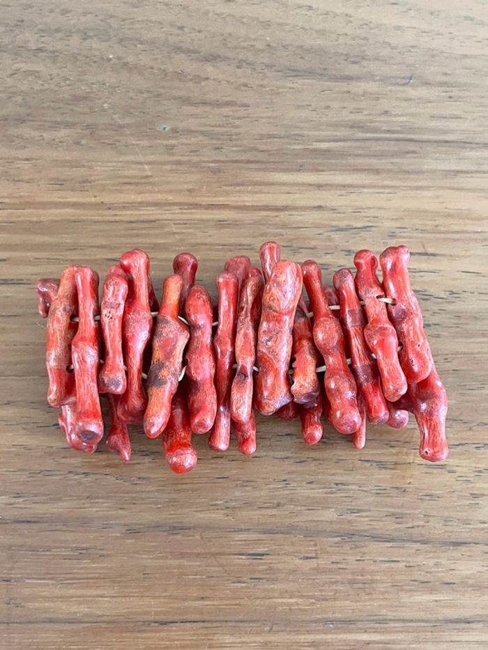 Bracelet extensible en branches de corail rouge vintage - photo numéro 1