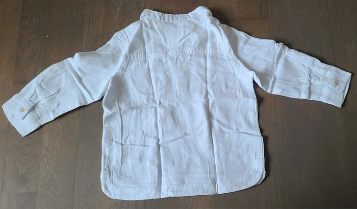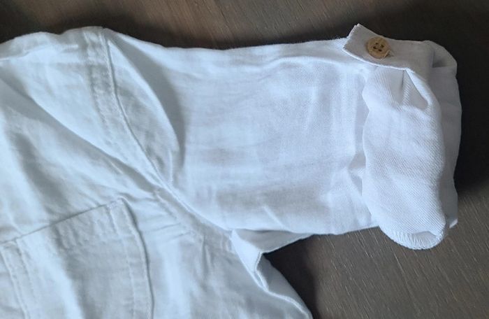 Chemise col tunisien blanc, 4 boutons système pour faire des manches 3/4 (voir photo) très bon état Kiabi 24M #lii4457garcon24mois