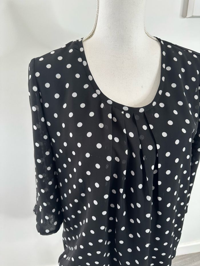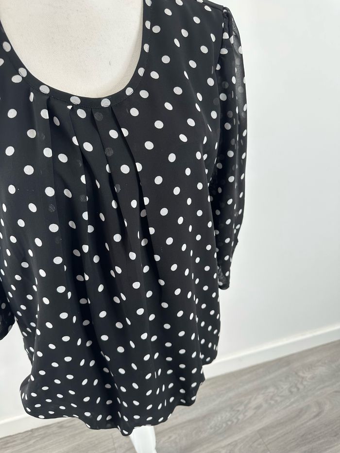 Blouse à pois noire et blanche Bonprix T44 XXL - photo numéro 2