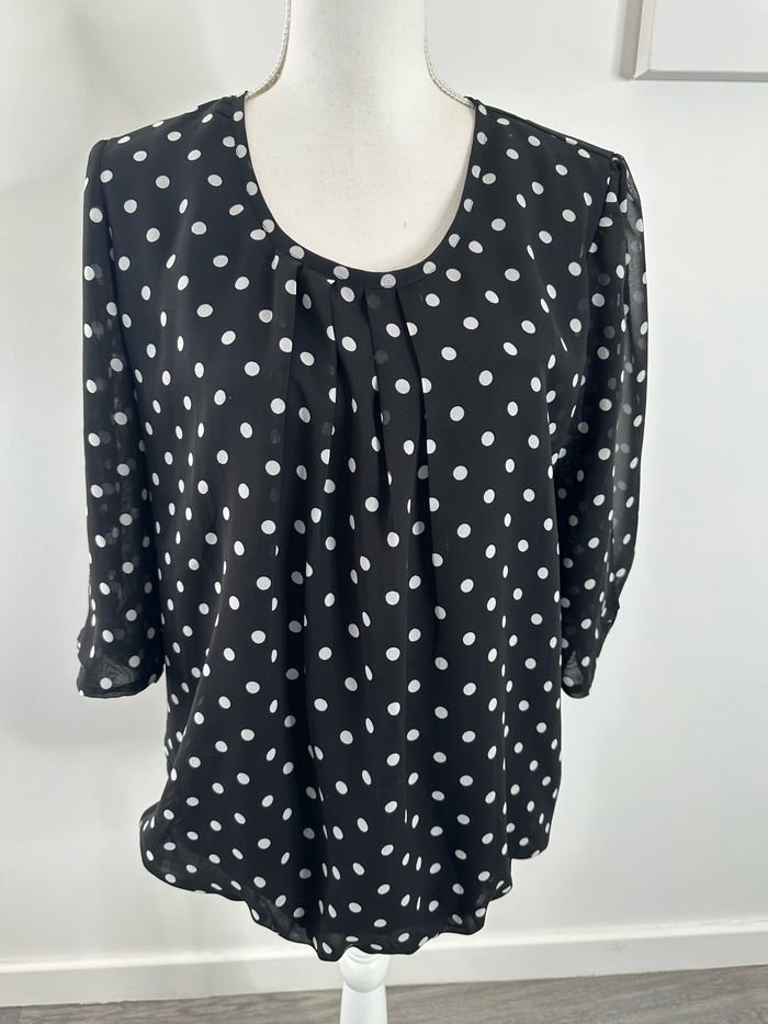 Blouse à pois noire et blanche Bonprix T44 XXL - photo numéro 1