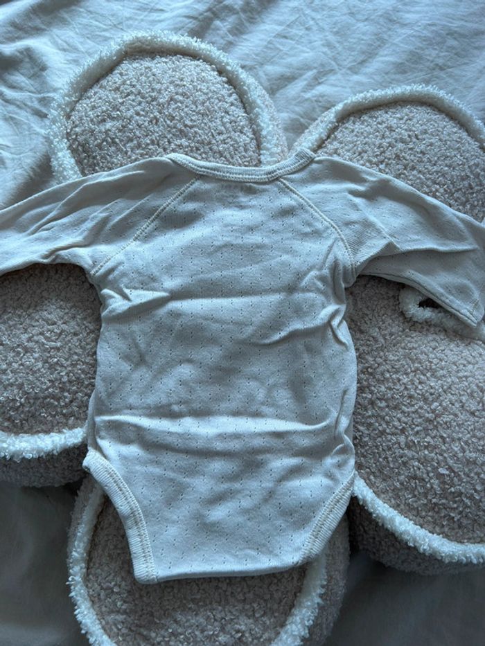 Body manches longues trous fantaisie - 1 mois - 52-55cm - Forme croisée - Ouverture entrejambe + poitrine à pressions