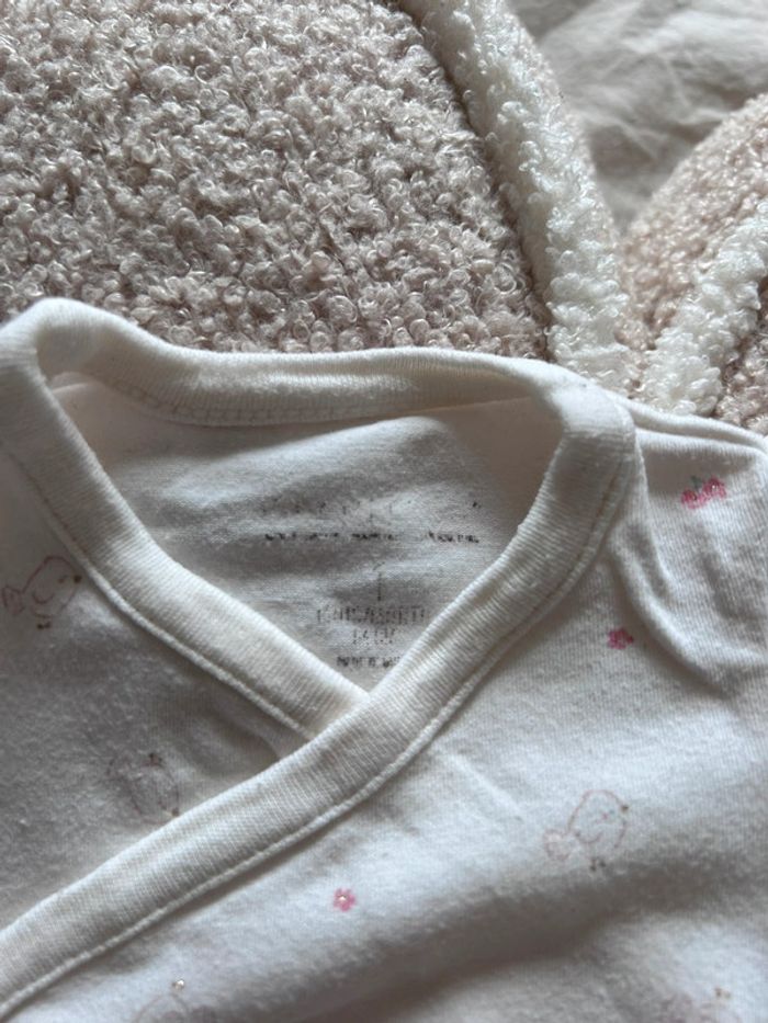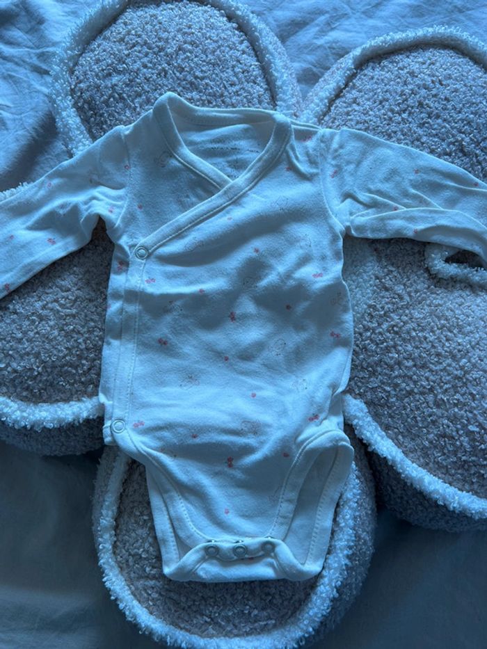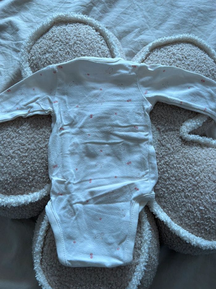 Body manches longues oiseaux - 1 mois - Forme croisée - Ouverture entrejambe + poitrine à pressions - un peu effacé mais très bon état