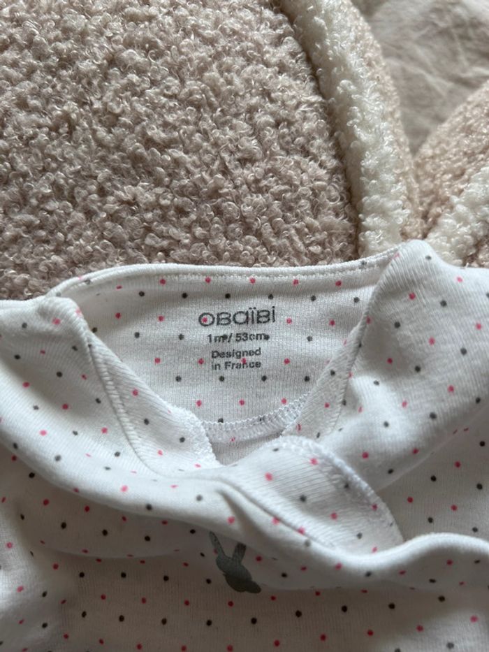 Body manches longues, points + lapin - 1 mois - 53cm - Forme croisée - Ouverture entrejambe + poitrine à pressions