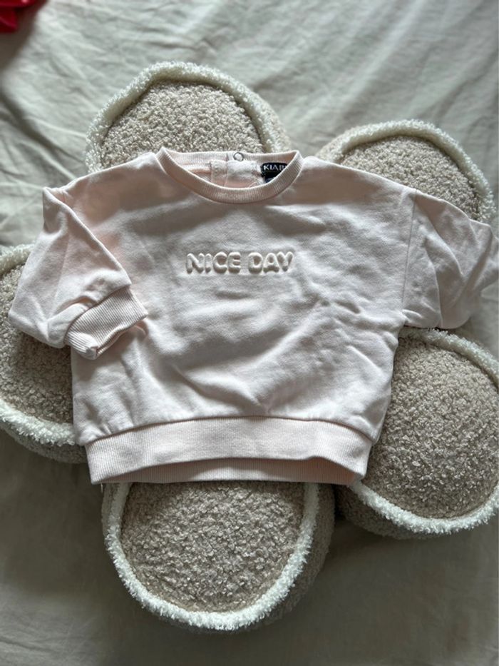 Sweat rose Nice Day - écriture en relief - ouverture 3 boutons - 3 mois - 60 cm - rose pale