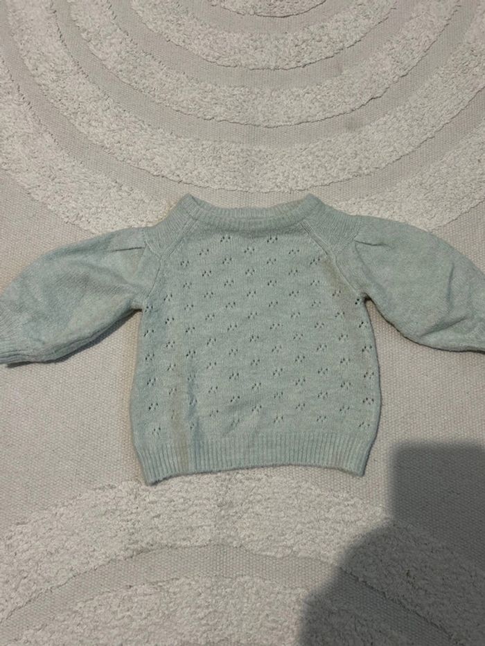 Pull en maille fantaisie - manches ballons - finitions côtelés - détails ajourés - poignets et base élastique - 6 mois - 67 cm -