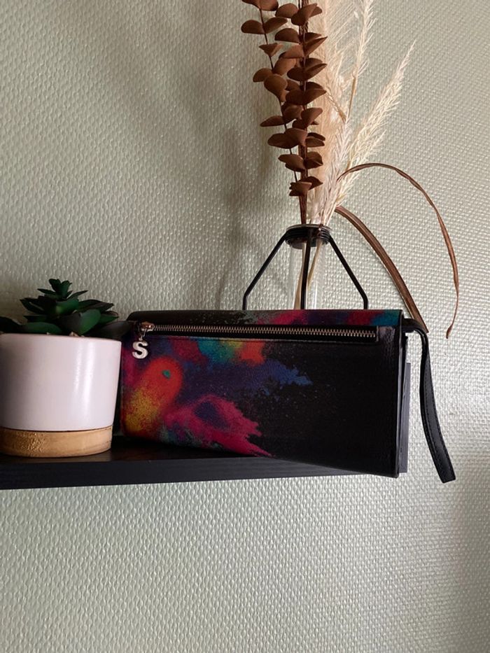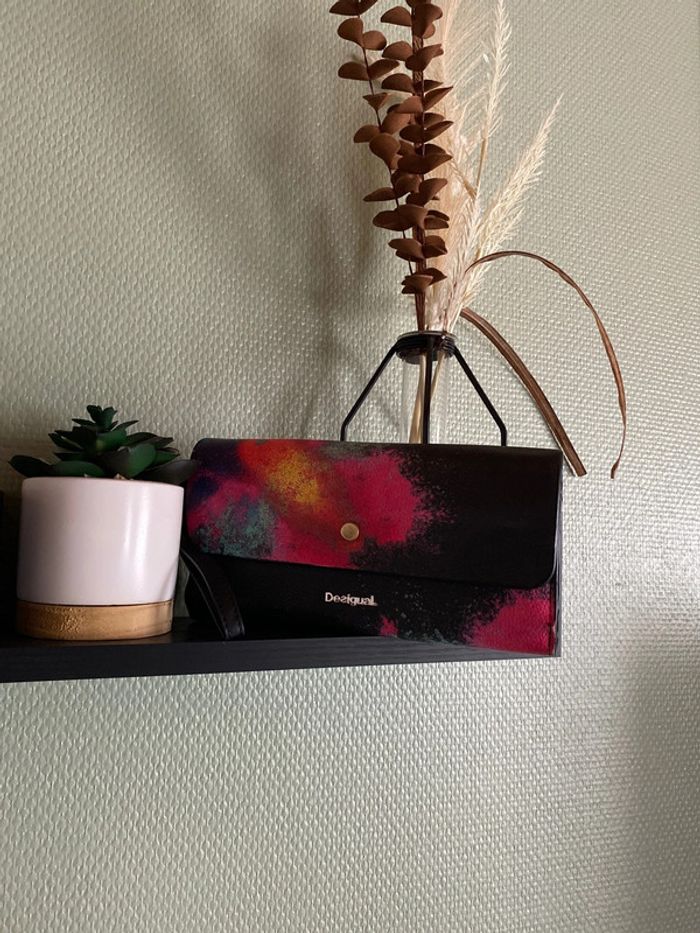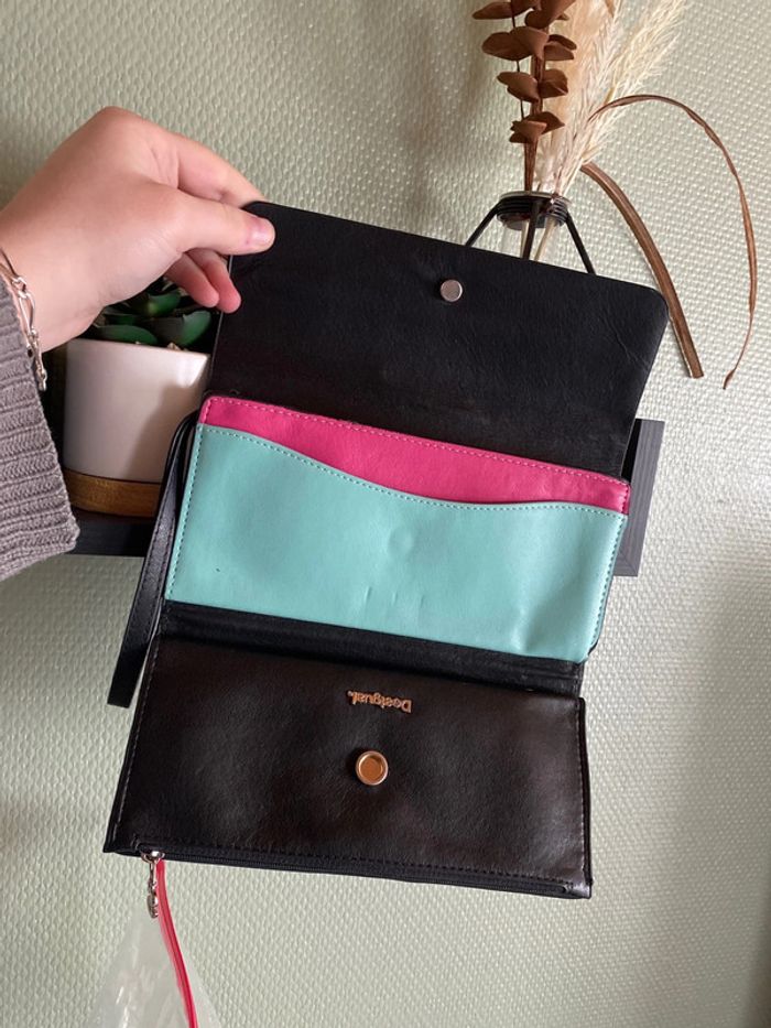 Portefeuille réversible de la marque désigual en très bon état Vous pouvez aussi bien le mettre du côté des couleurs ou du côté noir (voir photos)