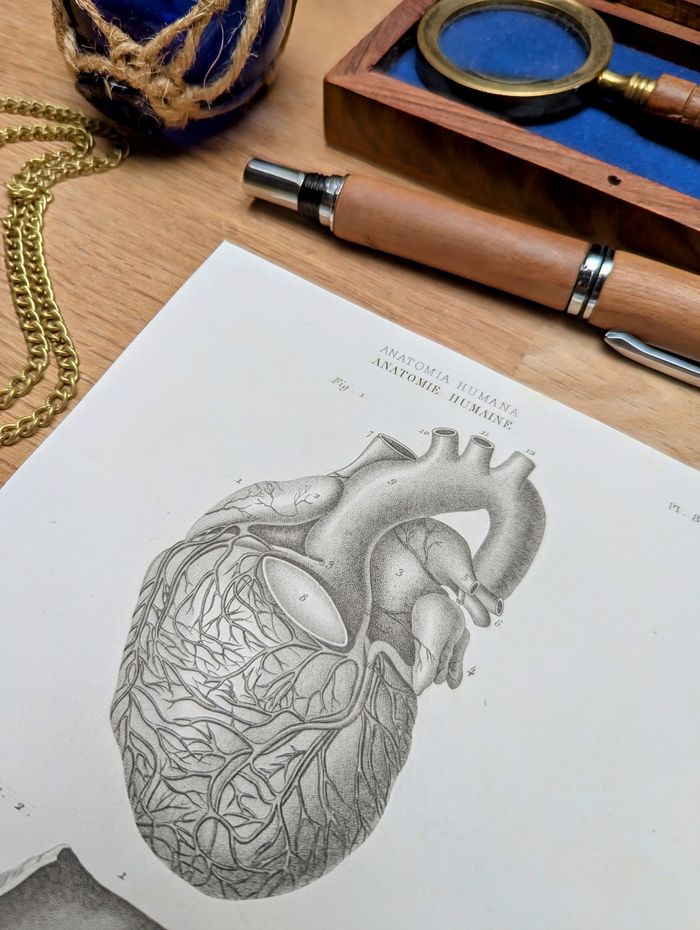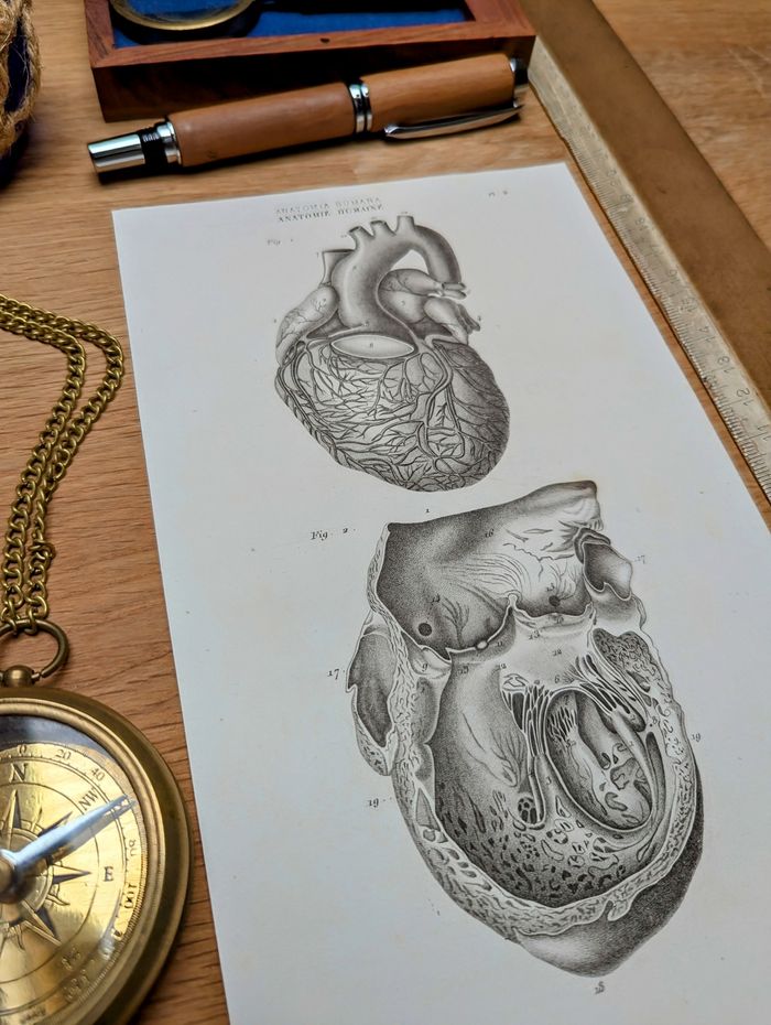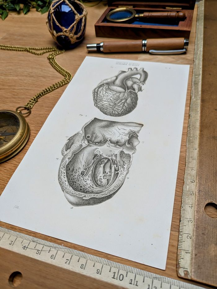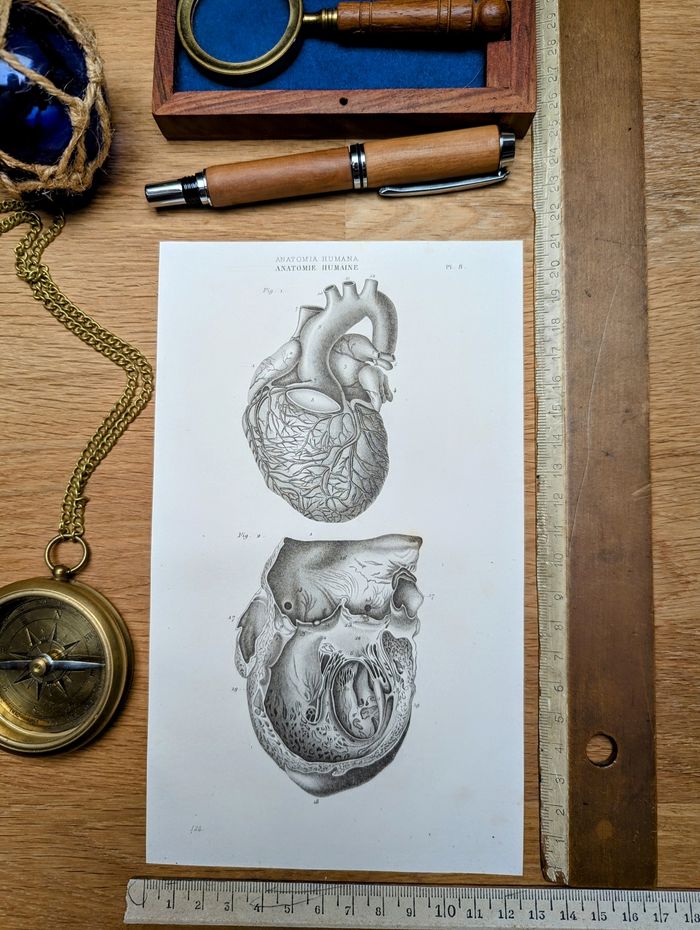 ⚠️Cadre non inclus⚠️ 🧭 Affichons Les Oubliées ! 🧭 Pour une décoration Vintage et Authentique, à s'offrir ou à offrir ! Voyagez dans le temps et partez étudier l'anatomie humaine avec cette magnifique gravure du Cœur humain. Imprimée à Paris, 56 rue Jacob en 1851. Il s'agit d'une impression ancienne authentique et non d'une reproduction moderne. Nous vendons uniquement des impressions originales qui ont traversé le temps avec un véritable aspect patiné. 📏 Dimensions carte : L12.5cm x H21.5cm 📦Envoi rapide, protégé et soigné Les affiches sont envoyées à plat dans une pochette plastifiée et une enveloppe carton rigide. Emballages soignés et personnalisés N'hésitez pas à nous demander d'insérer un message personnalisé si vous souhaitez offrir cette commande pour une occasion spéciale. 🔎 Les articles sont notés en "très bon état" au vu de leurs âges, bien évidemment ils présentent certaines marques du temps passé. Les photos vous permettront de voir l'état réel car l'objet en photo sera celui expédié, il n'y a pas de stock. 🚚 Livraison France et internationale Transformez votre décoration avec cette image vintage et laissez-vous emporter par les récits et découvertes d'autrefois. 🔑 Mots-clés #ireland #deutschland #osterreich #italia #portugal #espana #AfficheVintage #AfficheAncienne #GravureAncienne #CarteAncienne #AfficheBotanique #AfficheZoologique #AfficheGéographique #AfficheDeVoyage #AfficheArchitecture #DécorationMurale #ArtVintage #AfficheMurale #AfficheIllustrée #ArtAncien #GravureMurale #AfficheDeVille #AfficheHistorique #AfficheRetro #AfficheÉducative #AfficheDécorative #AfficheDeCollection #DécorVintage #AfficheCuriosité #AfficheScolaire #ArtDeMurVintage #brocantevisuelle #imagerieancienne #histoireEtGéographie #EstampeClassique #CartographieVintage #VieillesCartes #AmbianceRétro #CabinetDeCuriosités #HistoireNaturelle #Anatomie #Cardiologie #Cardio #Médecine #Docteur #Corps 1 118
