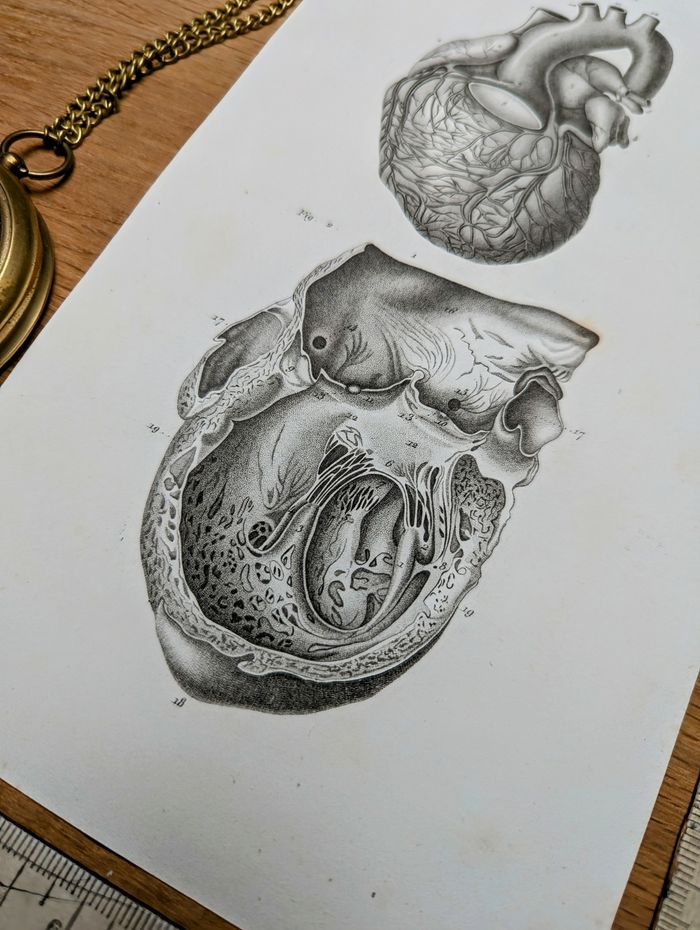 Imprimée en 1851, Le Cœur, planche anatomique. Original Vintage Authentique . - photo numéro 7