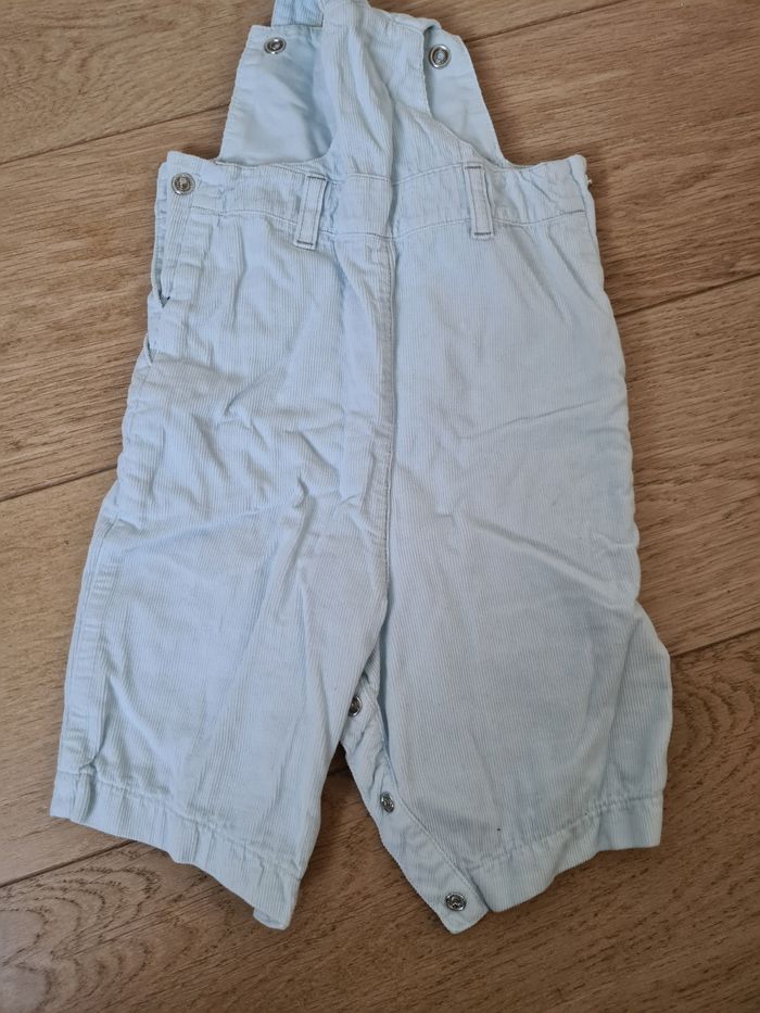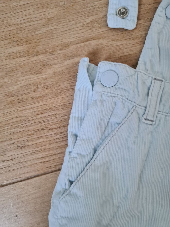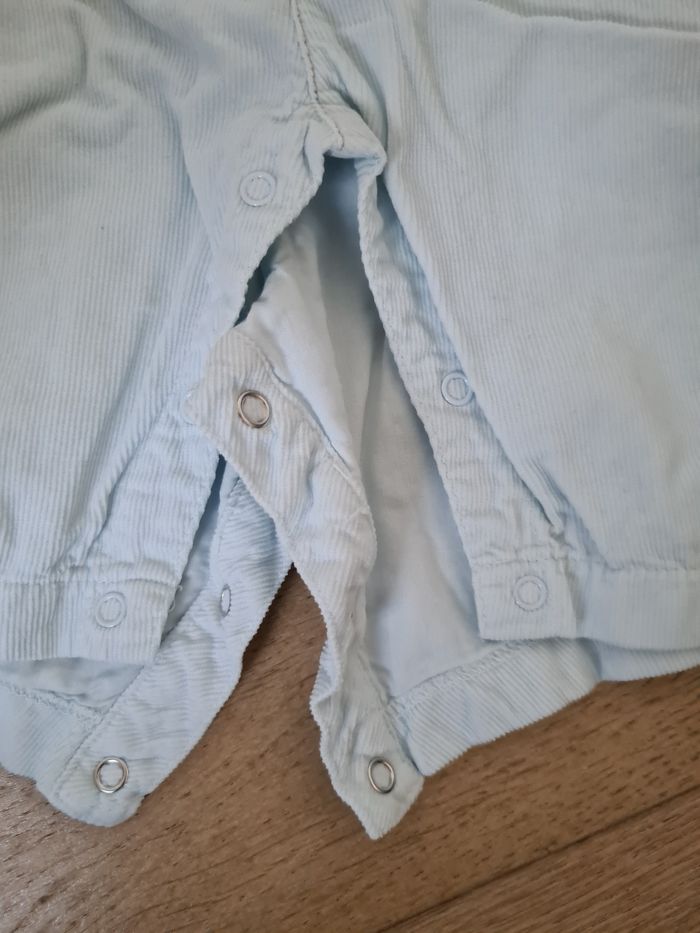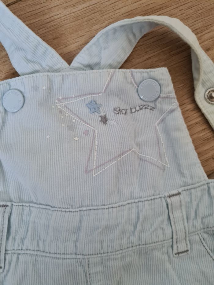 Salopette en velours bleu clair avec pression à l'entrejambe sur les côtés et 2 boutons au niveau des épaules pour régler la taille