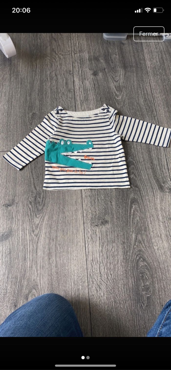 A vendre. T-shirt manches longues crocodile Orchestra taille 9 mois (71 cm). Peu porté.