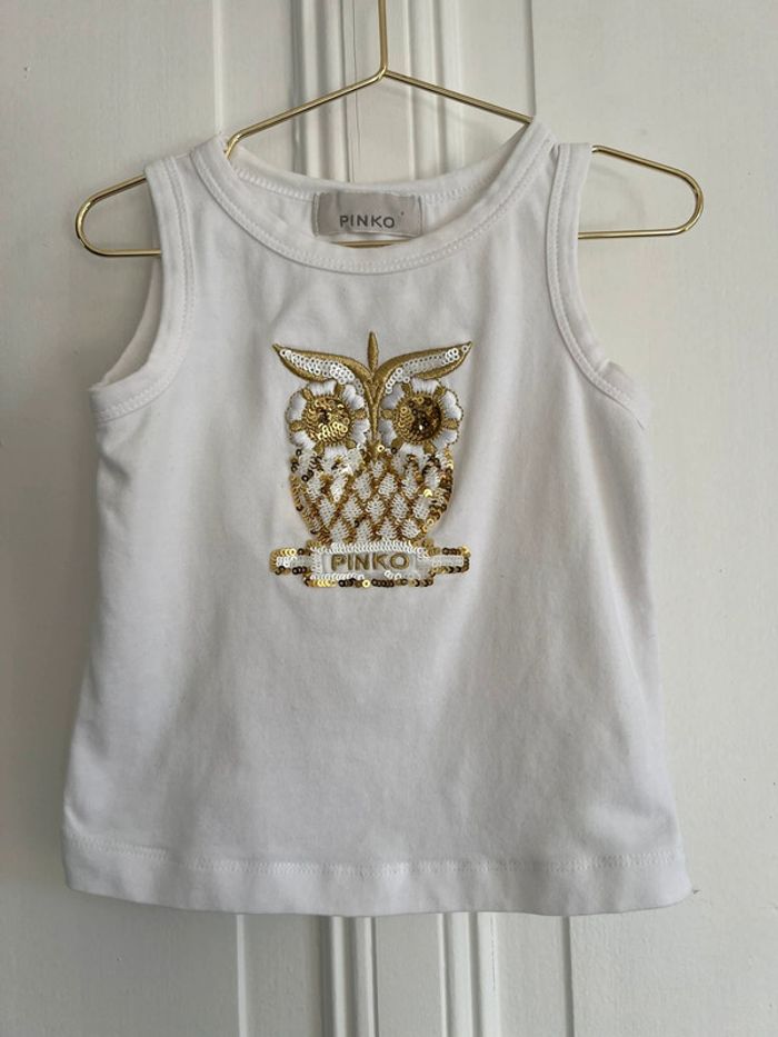 Débardeur Pinko 12 mois Blanc et doré Motif chouette Mini trace à l’arrière cf photo #lgti12mois #lgtipinko