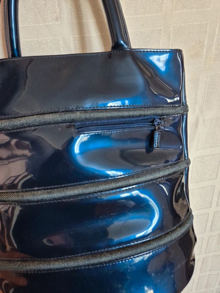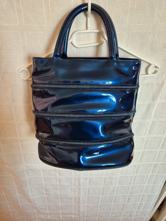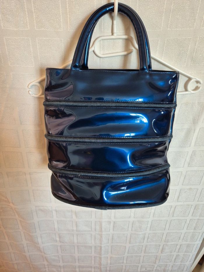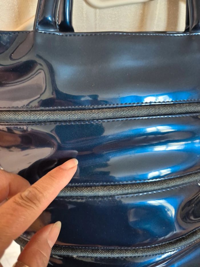 ⬇️mes autres annonces de sac 👉 #cg89sac un sac à main vernis bleu avec de bande ronde couleur jean. Une pochette au dos. très bon état - marque guerlain #sacamain #vernis #guerlain