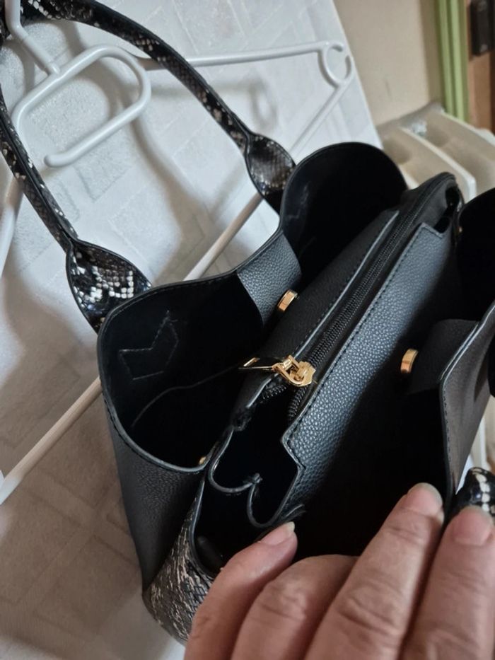 sac à main noir imprimé serpent - photo numéro 9