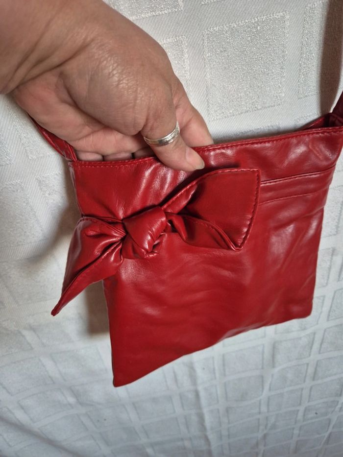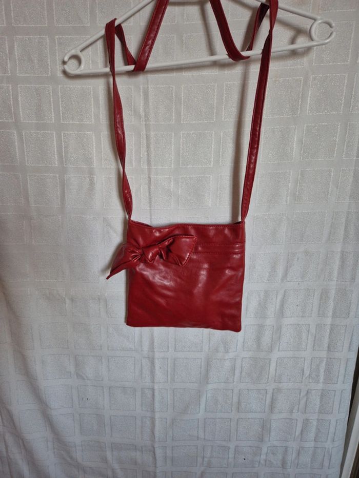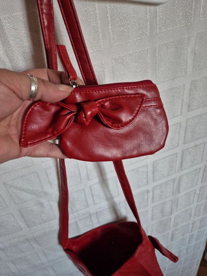 ⬇️mes autres annonces de sac 👉 #cg89sac un sac en bandoulière rouge avec noeud devant, 1 pochette zippée à l'intérieur. Un porte monnaie avec un noeud. Le sac mesure 22 cm x 22 cm et 63 cm de longueur de hauteur des anses. très bon état #sacamain #noeud #portemonnaie #bandoulière