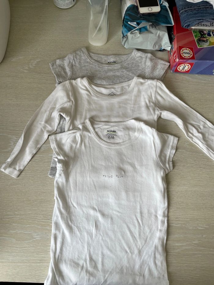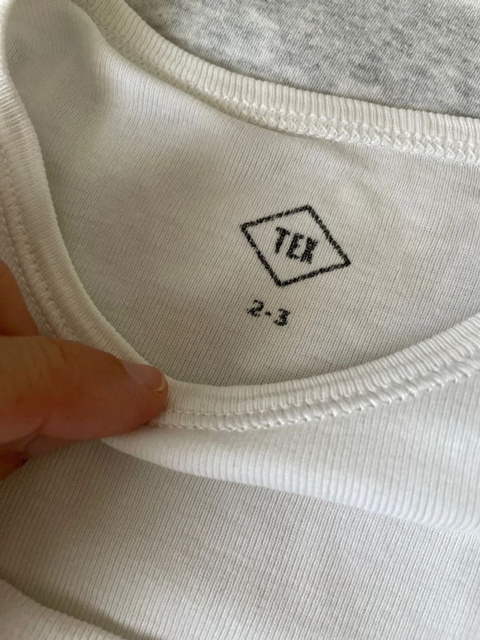 Lot 1 t-shirt manche longue marque TEX 1 T shirt gros chiné kiabi 1 T shirt blanc écriture délavé kiabi