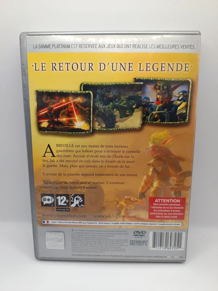 JEU PLAYSTATION 2 OCCASION 🔥 JAK 3 Sans notice Jeu testé et fonctionnel peut contenir des traces d'usure et griffures sur le CD et boîtier ne gêne pas le bon fonctionnement ✅👍 📦✅ ENVOI SOUS 24H RAPIDE ET BIEN EMBALLÉ BON ACHAT A VOUS