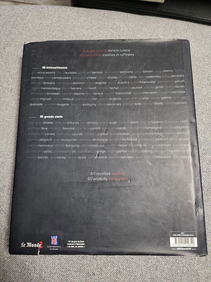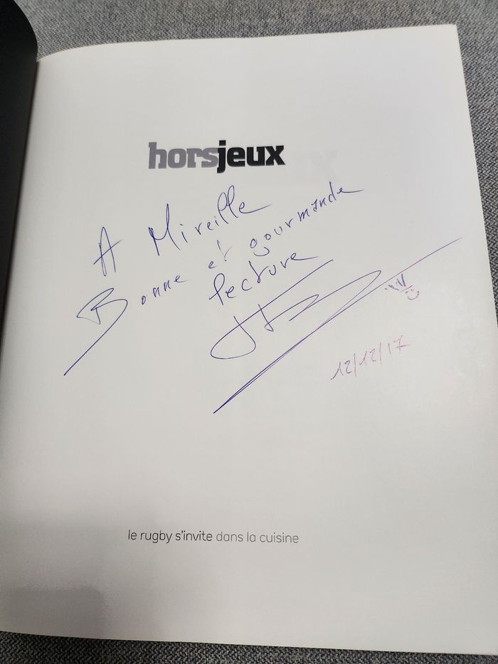 Livre recettes horsjeux rugby & gastronomie la rencontre au sommet la couverture un peu abîmé une dédicace pers première page voir dernière photo livre en très bon état