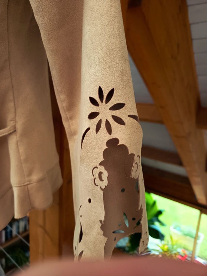 Gilet Sandro taille 2 Camel clair, très joli avec ses manches évasées , polyester et elasthanne.