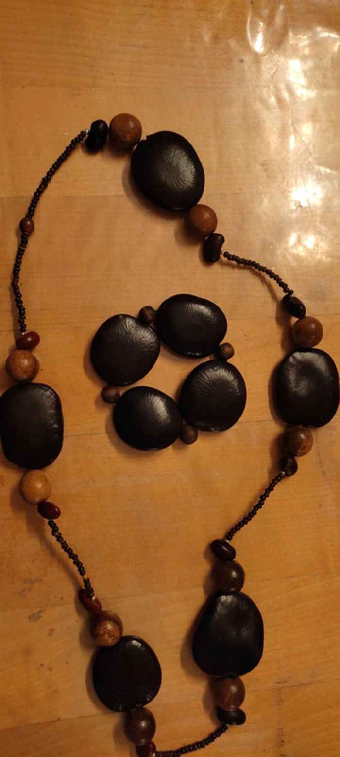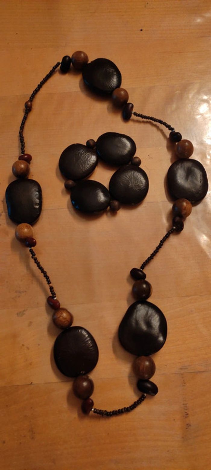 Collier long et bracelet en graines de wada