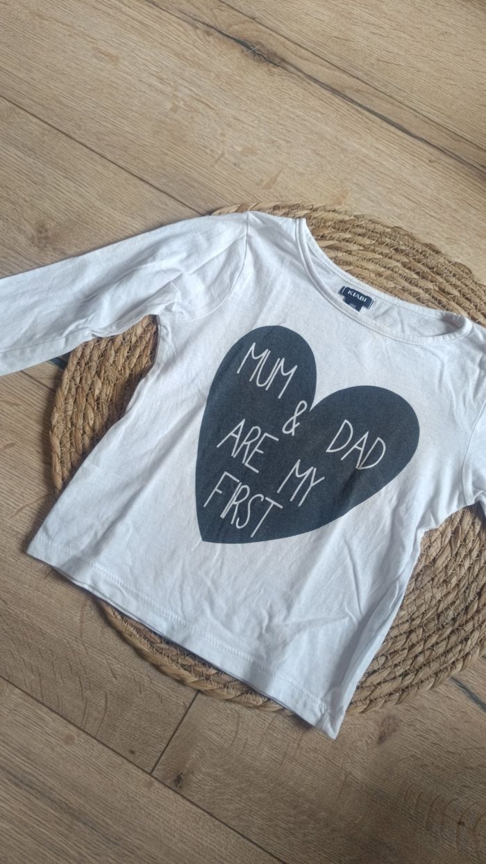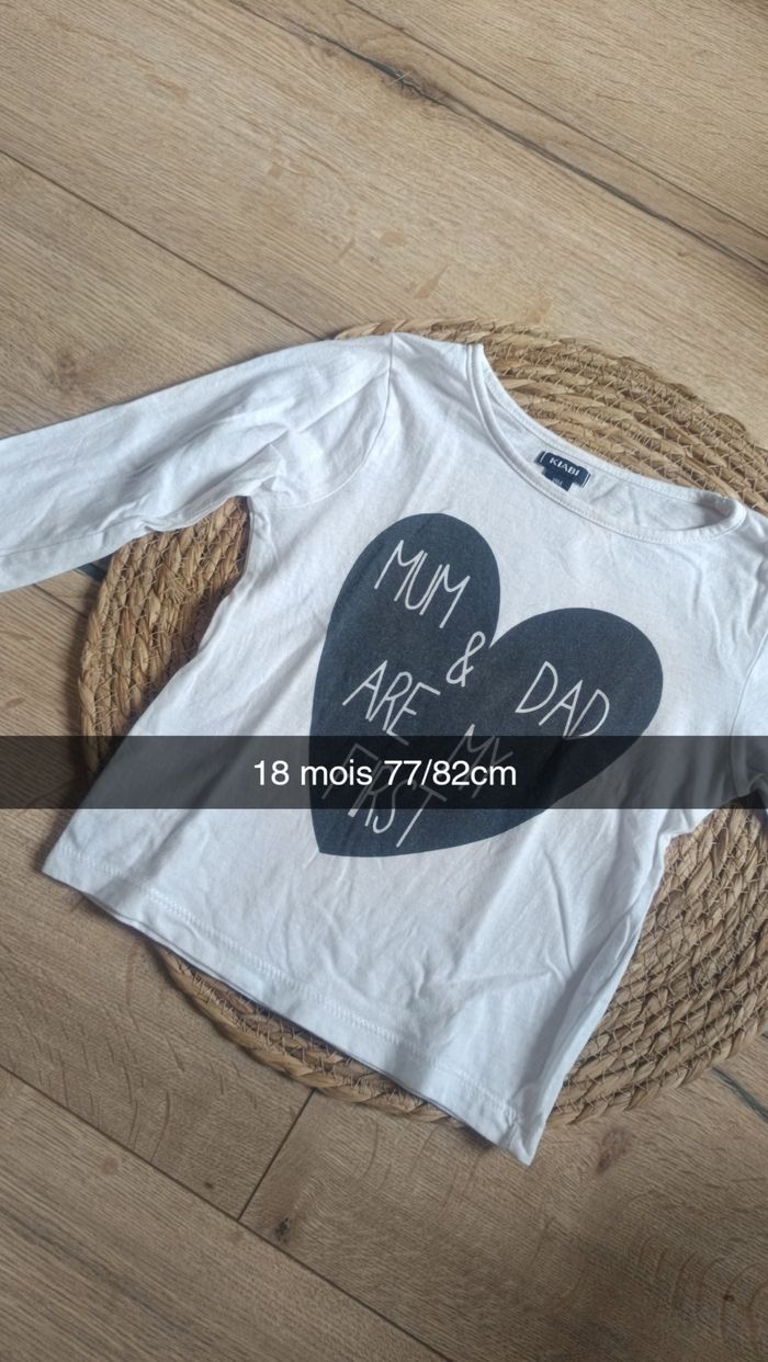 T-shirt manches longues blanc 18 mois Kiabi mum&dad - photo numéro 1