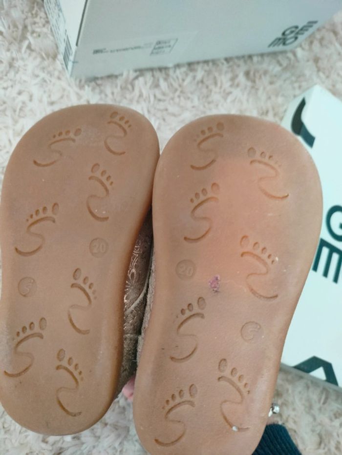 Chaussures Apprentissage de la marche. Pointure 20 Portées, elles restent en TB état, bon maintient, semelles impec, seul le devant est largement abîmé par le 4pattes. Desssus et semelles intérieures cuir #aalixpieds #apprentissagemarche #gemo #gemo20 #chaussuresbebecuir