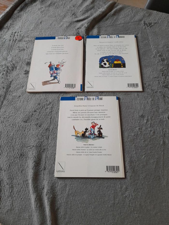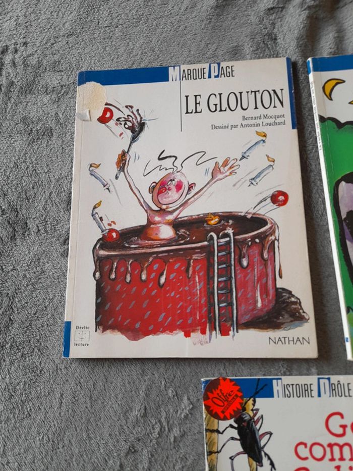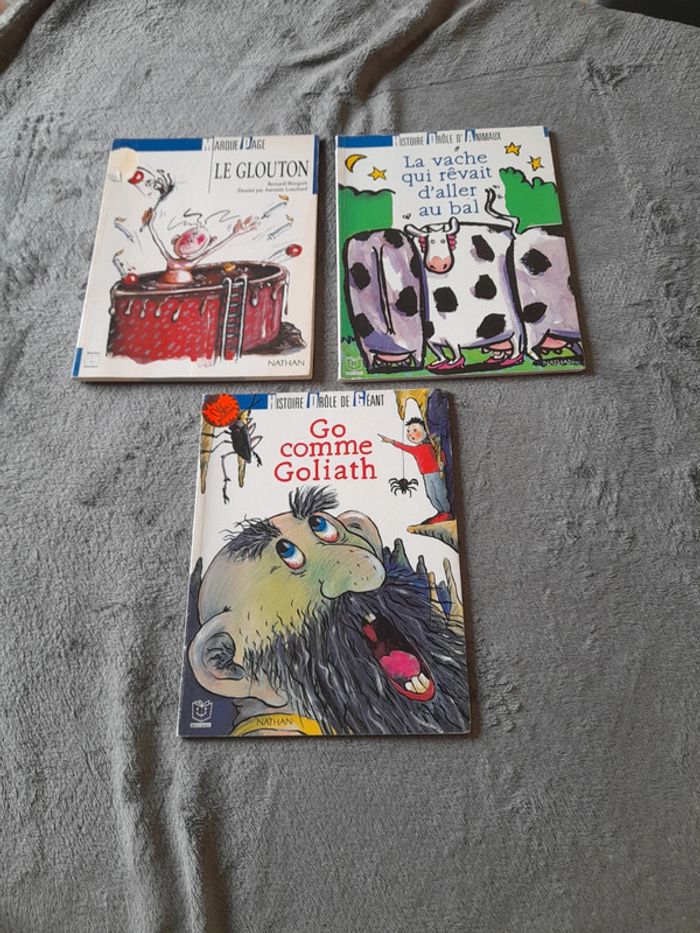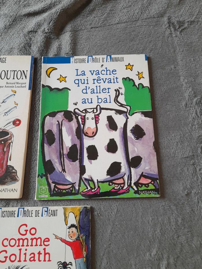 Livre qui Aide à l'apprentissage de la lecture Nathan Histoire drôle d'animaux la vache qui rêvait d'aller au bal Histoire drôle de géant Go comme Goliath Marque page le glouton