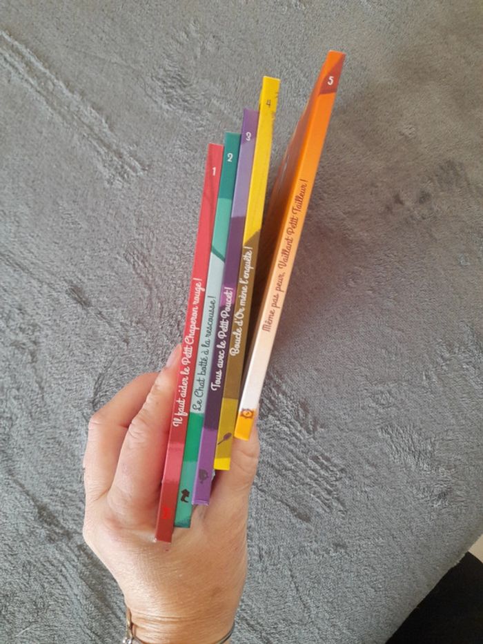 Lot de livre Mac do 1 il faut aider le petit chaperon rouge ! 2 le chat botté à la rescousse ! 3 tous avec le petit poucet! 4 Boucle d'or mene l'enquête ! 5 Même pas peur, Vaillant petit tailleur ! Hachette jeunesse