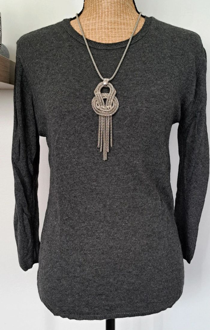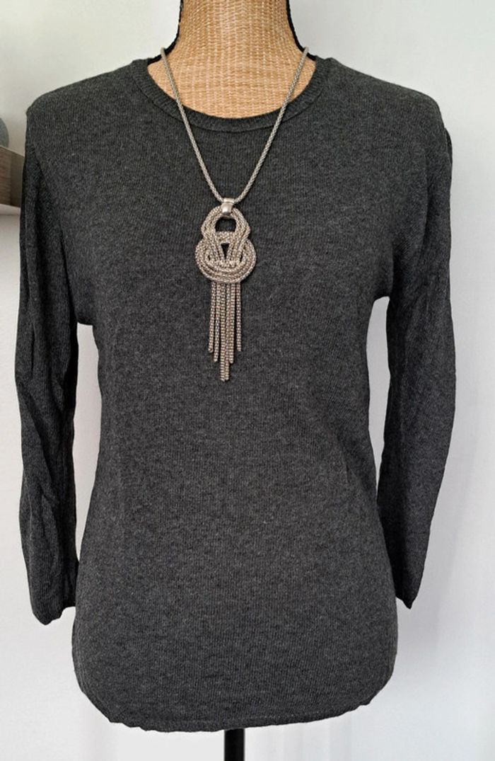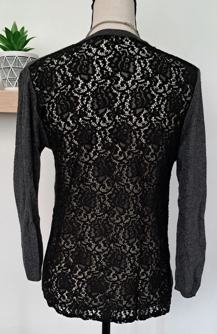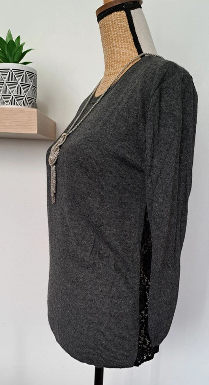 Très beau pull gris et noir Zara, légèr,dentelle sur le dos, manches trois quarts, taille M, en très bon état.