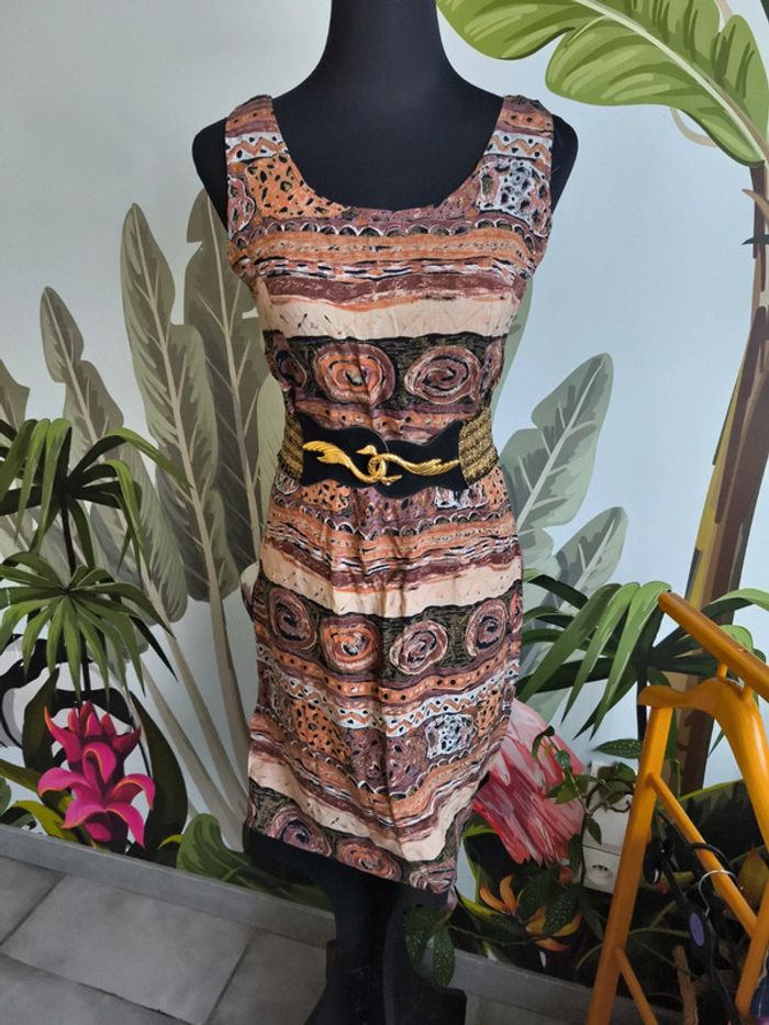 #M38marylinebonte ☺️ N'hésitez pas à consulter mes autres annonces, 🏵️Robe légère renatto bene taille 2. Fermeture éclair dans le dos. Sans la ceinture. A été reprise sur le côté proprement, voir dernière photo. 📏 Longueur 93cm Épaule 31cm Aisselle 41cm Taille 39cm
