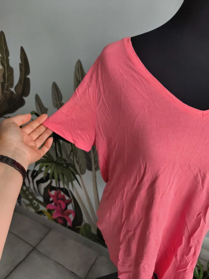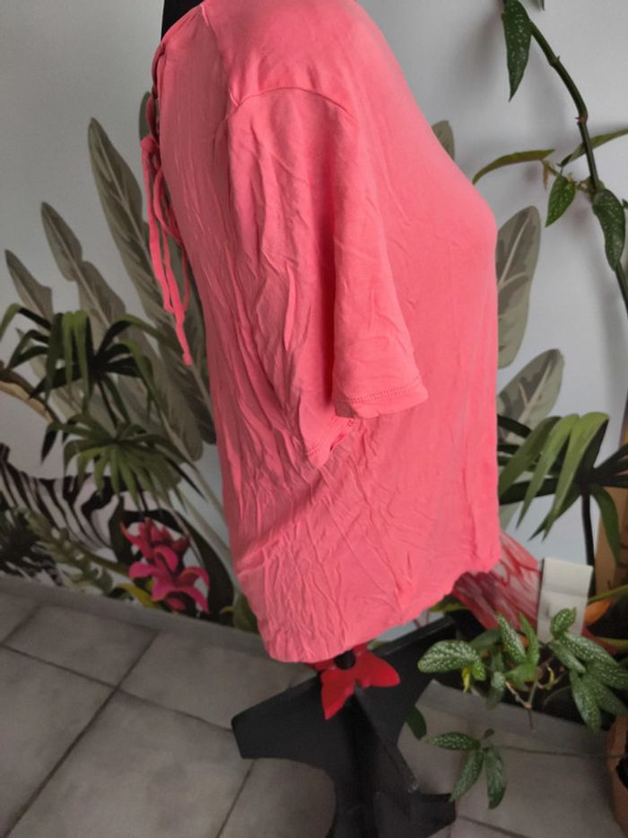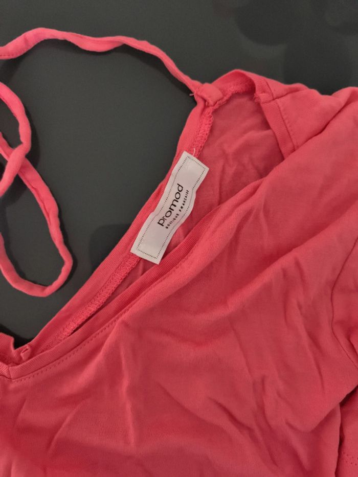 #L40marylinebonte ☺️ N'hésitez pas à consulter mes autres annonces, 🏵️T-shirt rose Promod taille L. Laçage au dos. A noter défauts peu visibles que je montre. 📏 Longueur 64cm Aisselle 52cm