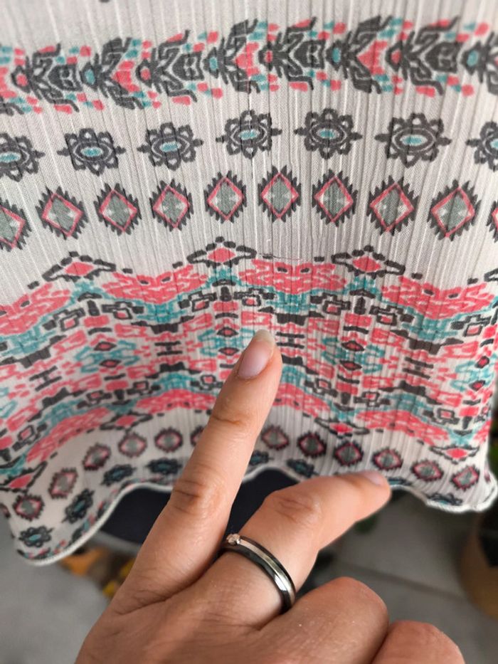 #S36marylinebonte ☺️ N'hésitez pas à consulter mes autres annonces, 🏵️Top mango taille S. Plusieurs fils tirés mais ne sautent pas aux yeux. 📏 Longueur 55cm Aisselle de 36.5 à 44cm